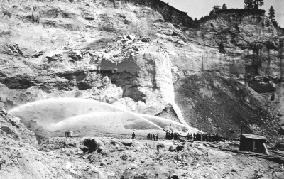 In the nearly 40 years of operation the NBGMC, which was commonly called the French Company, invested approximately $3,500,000.00 with expenses equaling the same amount. But this was expected. The company planned to work for many, many more years. What wasn’t expected was the restrictions placed on hydraulicking and the price of gold regulated by the government. With expenses out weighing the profits, the company shut down it’s operation around 1900 leaving a pit that was 6,900 feet long, 3,800 feet wide and 600 feet deep. The company excavated 41 million cubic yards of dirt and gravel from the diggings.